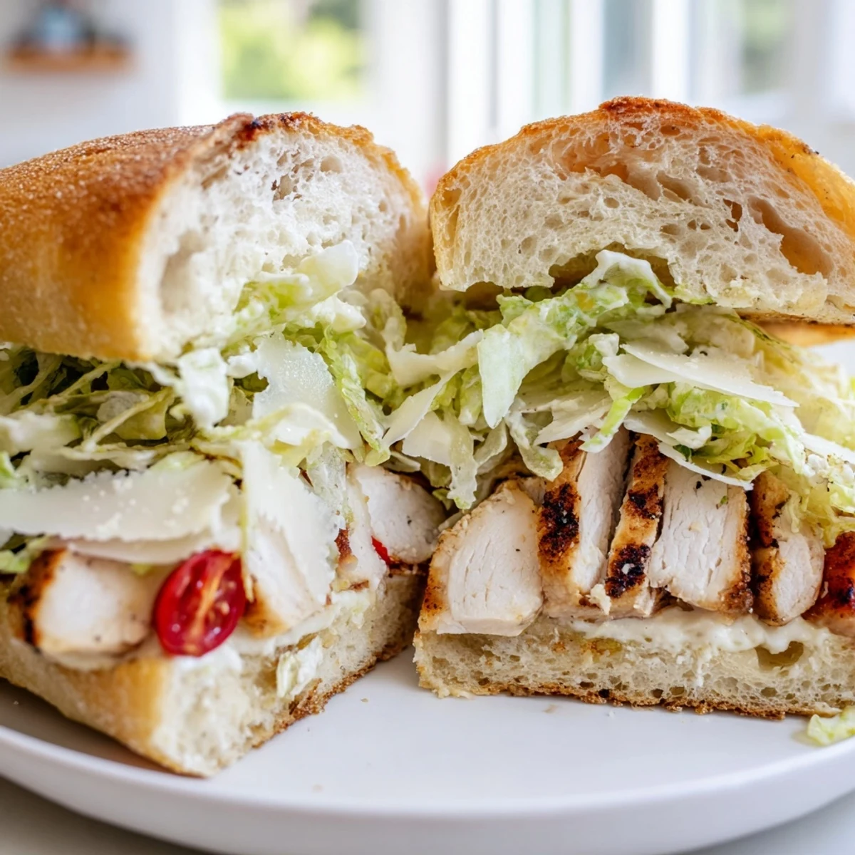 This hearty sandwich transforms the beloved Caesar salad into a handheld meal featuring seasoned grilled chicken breasts sliced thinly and layered with shredded romaine lettuce. The homemade Caesar dressing blends mayonnaise, Parmesan, lemon juice, Dijon mustard, and Worcestershire sauce for authentic flavor. Everything gets piled onto butter-toasted ciabatta rolls that add satisfying crunch to each bite.